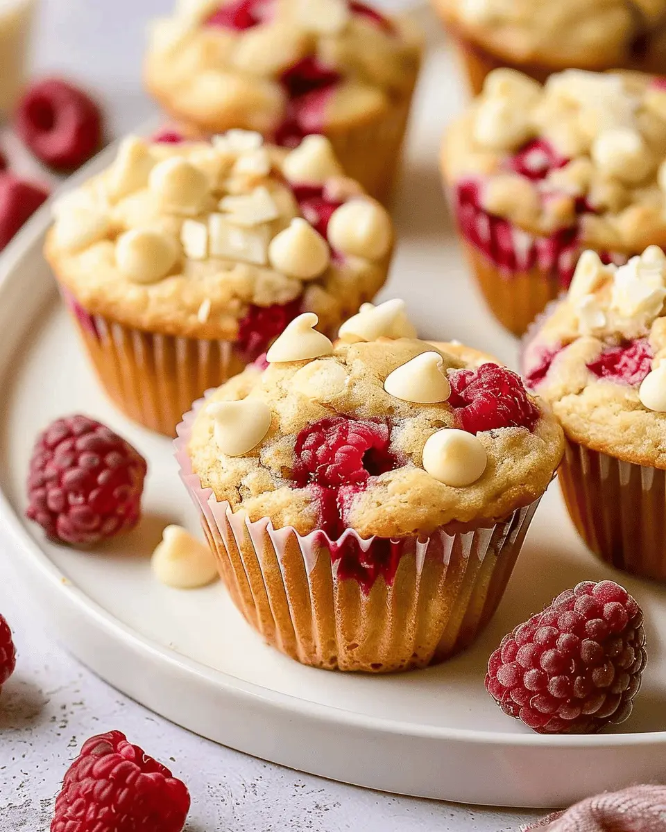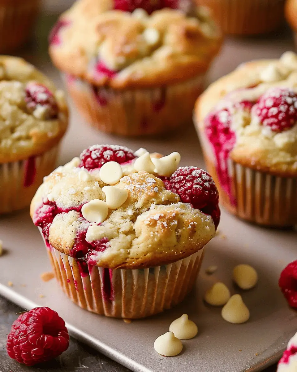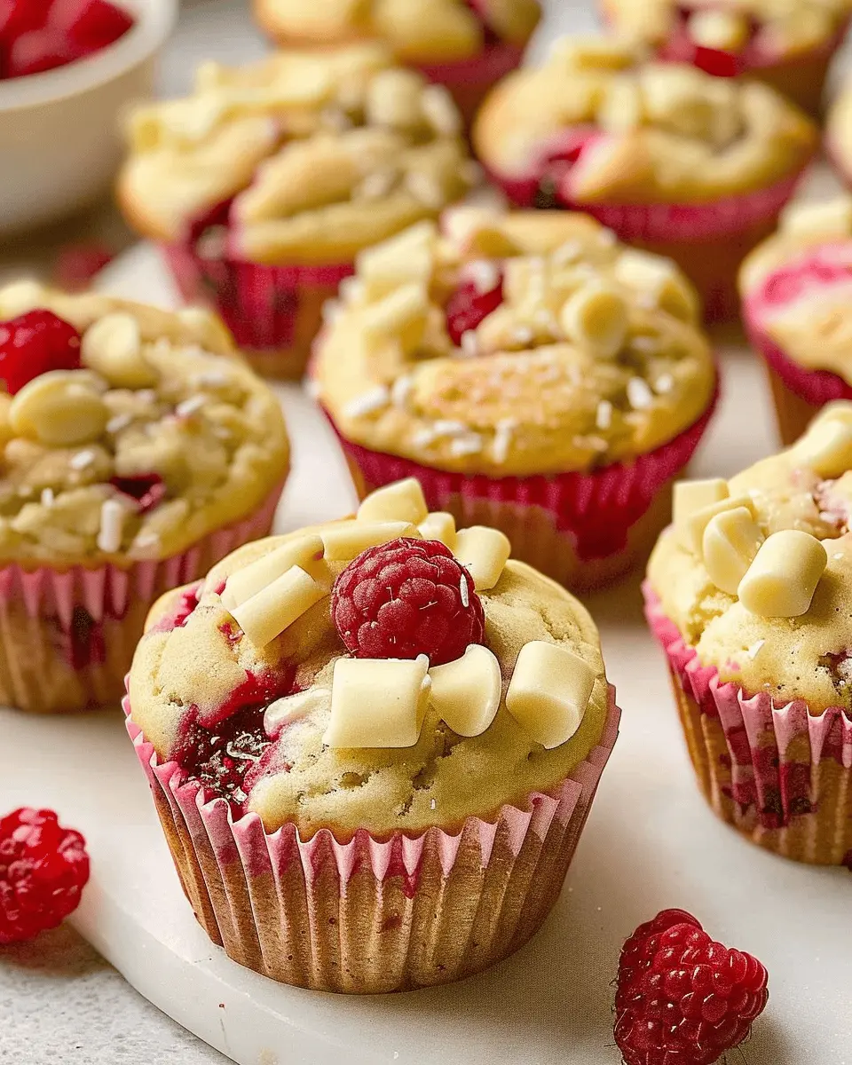 Deliciously moist muffins that combine the sweetness of white chocolate with the tartness of raspberries, perfect for breakfast or a snack.